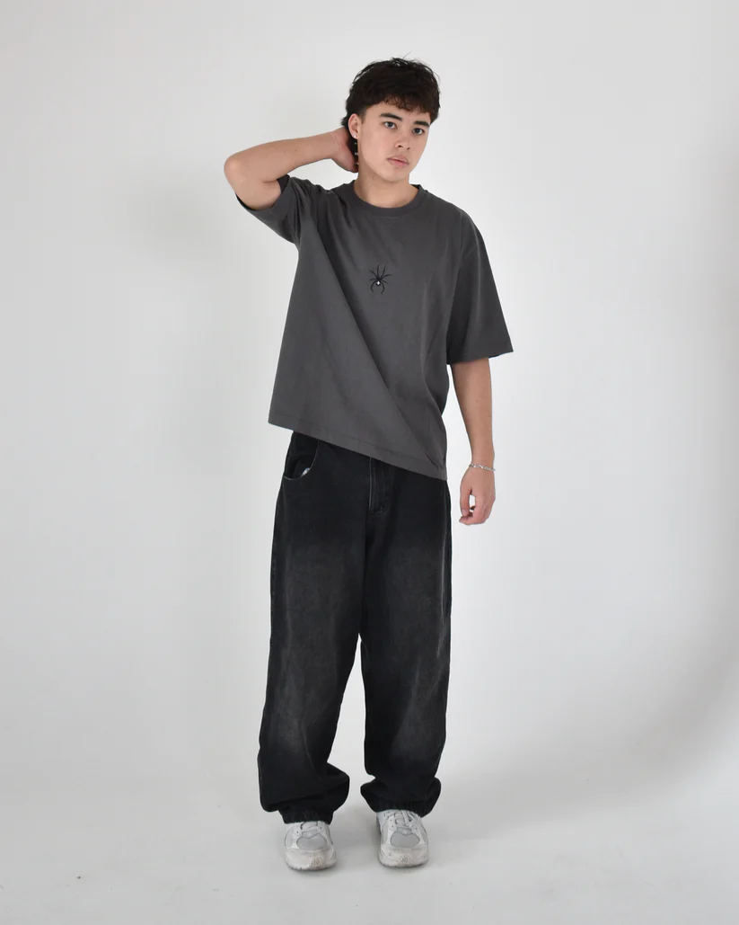 BOXY/OVERSIZED TEE.230GSM.100% COTTON.MULTI-COLOUR LAYERED FABRIC.EMBRODIERY ON FRONT & BACK.