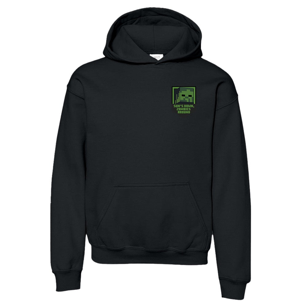 Minecraft Sun's Down, Zombies Around Kids Hoodie