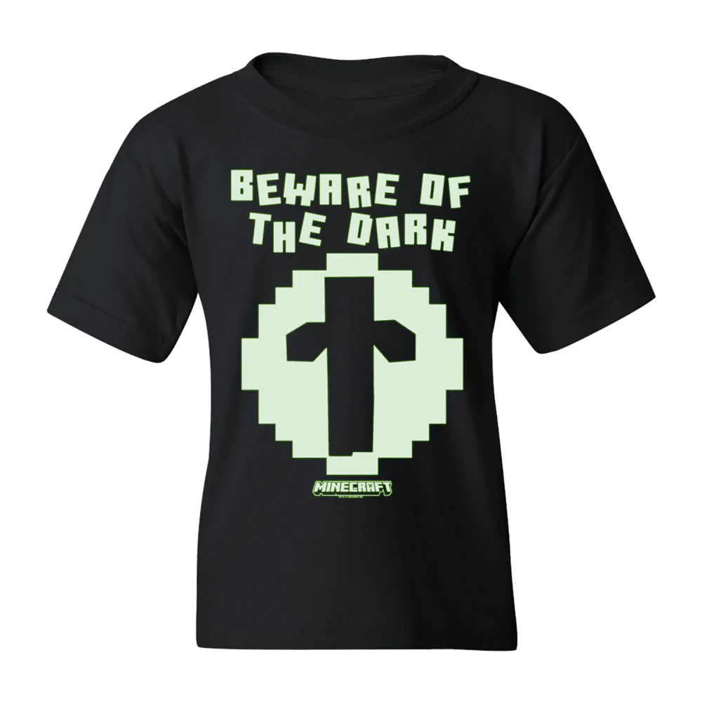 Minecraft Zombie Beware of The Dark Glow in The Dark Kids T-Shirt