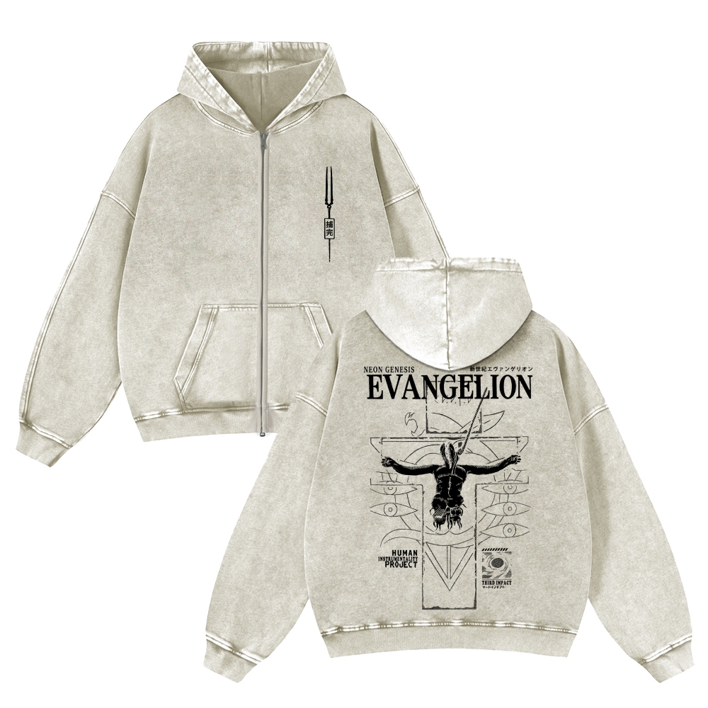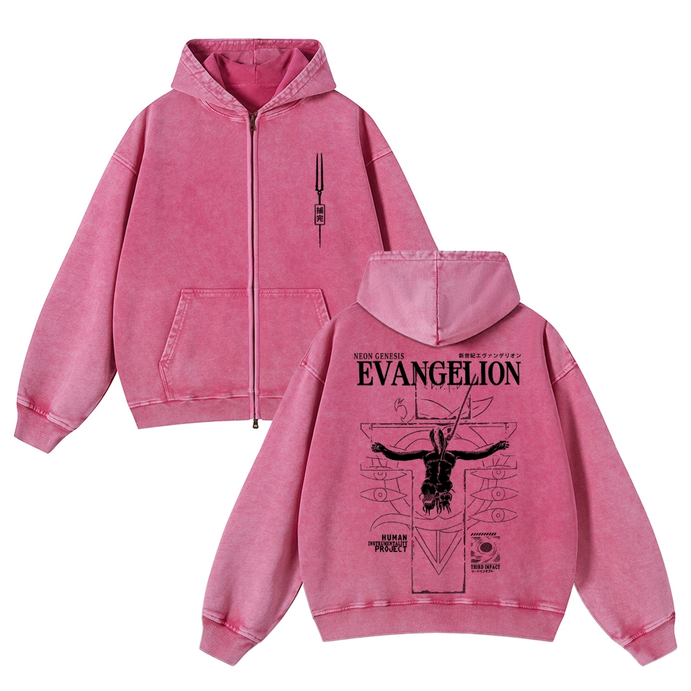 Neon Genesis Evangelion Unisex Washed Cotton Zip Up Hoodie 2511029217