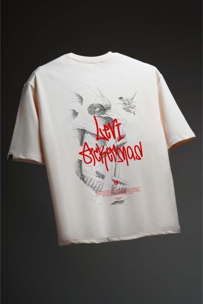 "Ackerman's Will" oversized t-shirt is a tribute to the indomitable Levi Ackerman from Attack on Titan, embodying his relentless strength and resolve. The front showcases Levi as Humanity's strongest soldier, capturing his fierce determination and unmatched skill. On the back, an intense design portrays Levi annihilating a titan, symbolizing his unyielding will and battle prowess. This bold design combines dynamic imagery and intricate details, honoring Levi's legendary status.
