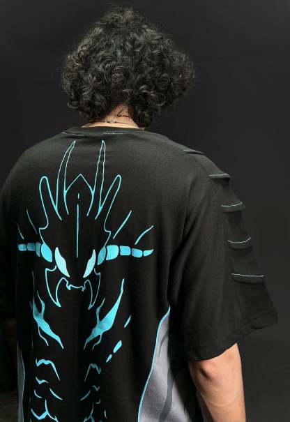 Our "BERU" oversized t-shirt channels the power of Jin-Woo’s fierce Shadow Soldier. The front captures Beru’s intimidating aura, while the sleeves featuring armor patterns that reflect his warrior spirit. A bold back graphic highlights his dominance as the Ant King turned loyal Shadow, making this design a true symbol of strength and loyalty.