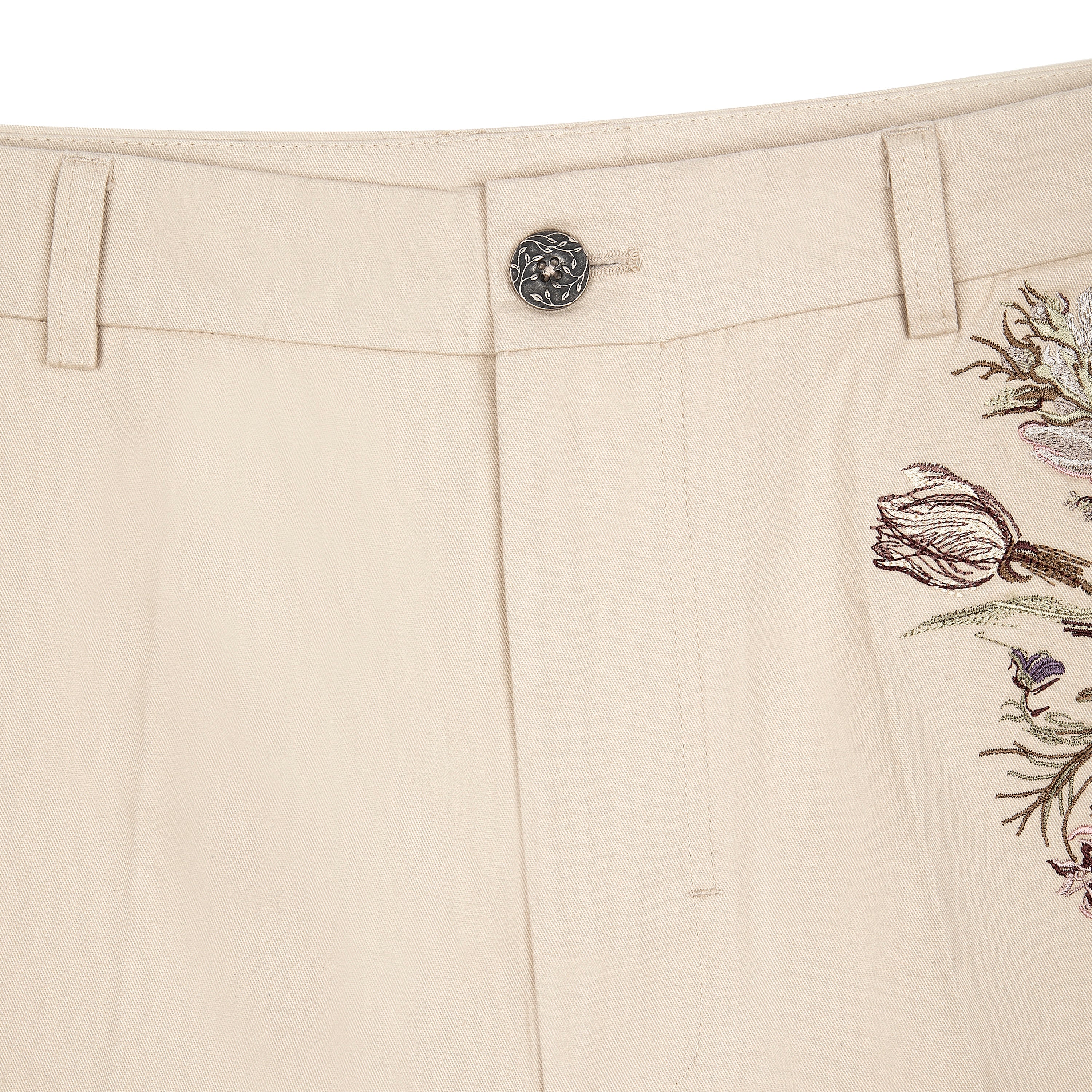 270 gsm gabardine / 100% cotton / embroidery on front / custom buttons / straight fit / fits true to size