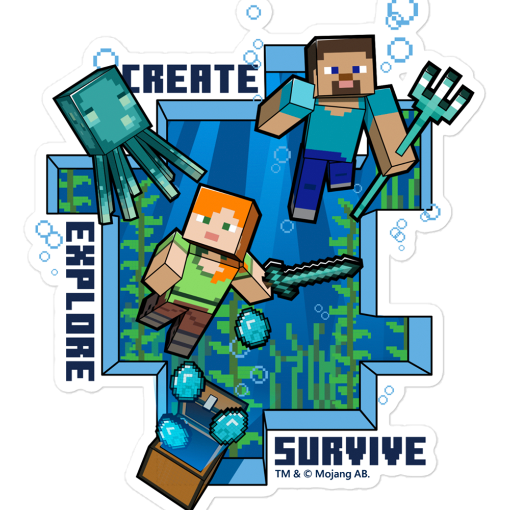 You can take the magic of Minecraft: Caves & Cliffs with you everywhere you go with this Minecraft: Caves & Cliffs Create, Explore, Survive Sticker. Featuring the main building blocks of Minecraft, this sticker is a fun addition to any gamer's water bottle, laptop, and more.