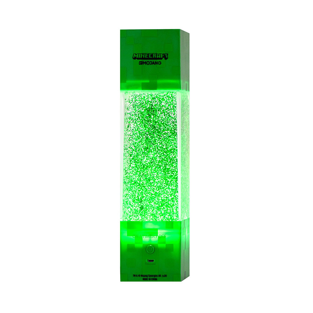 Add a little bling to your Minecraft game with this Minecraft Creeper Glitter Light. Better than an old-school lava lamp, this lamp uses a motor with magnets to make the glitter sparkle and spin when it's on, creating a mesmerizing, scintillating whirlpool effect.