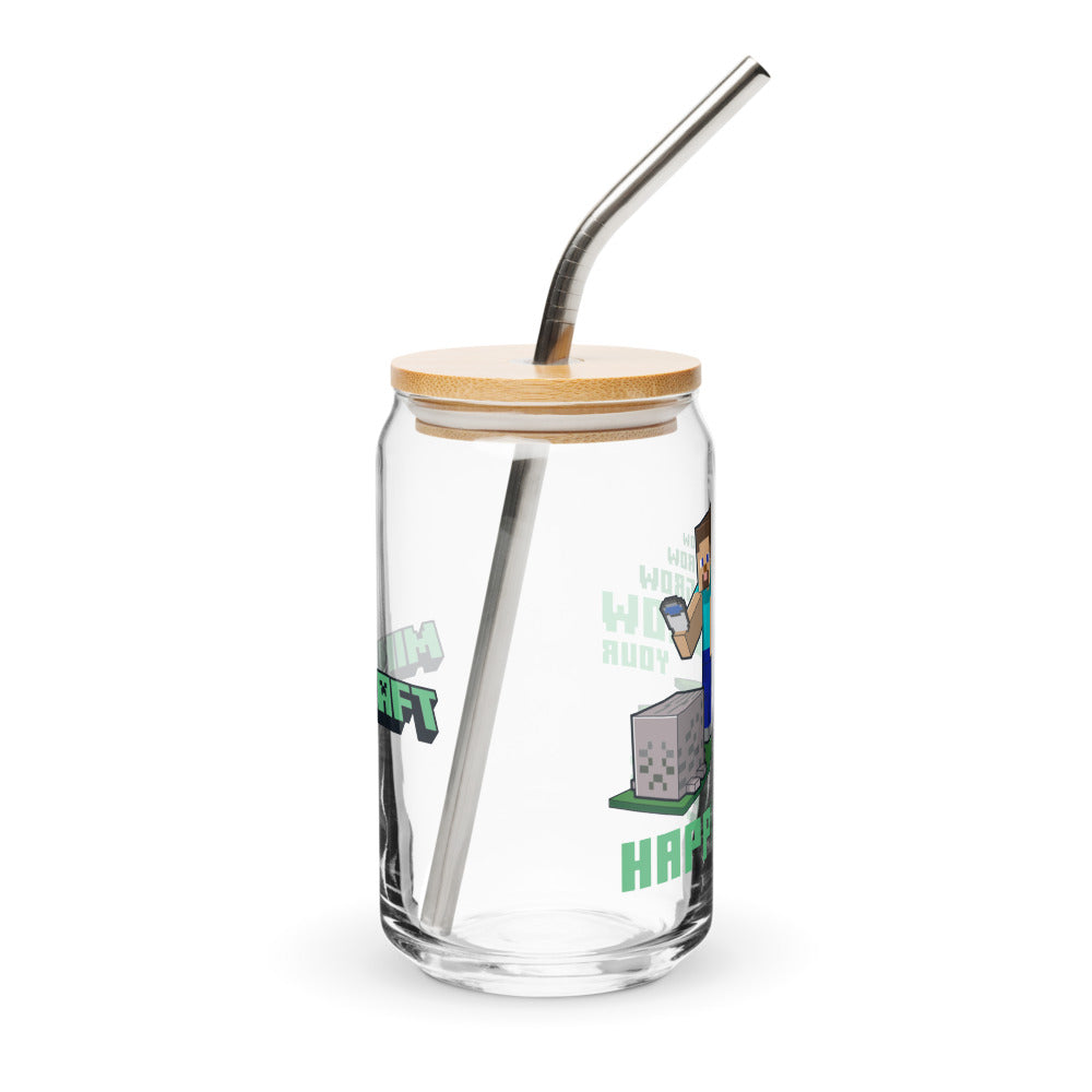 Minecraft Grow Your Happiness Can-Shaped Glass with Lid and Straw