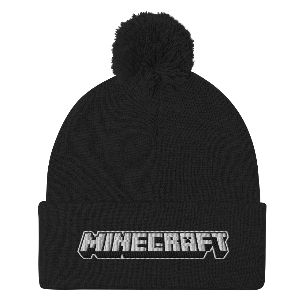 Minecraft Logo Pom Pom Knit Beanie