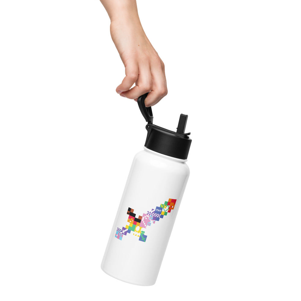 Celebrate your pride and love for Minecraft in one go with the Minecraft Sword Pride Stainless Steel Water Bottle with a Straw Lid. Featuring a bold pixel sword design in vibrant pride colors, this double-walled bottle keeps your drinks cold for hours.