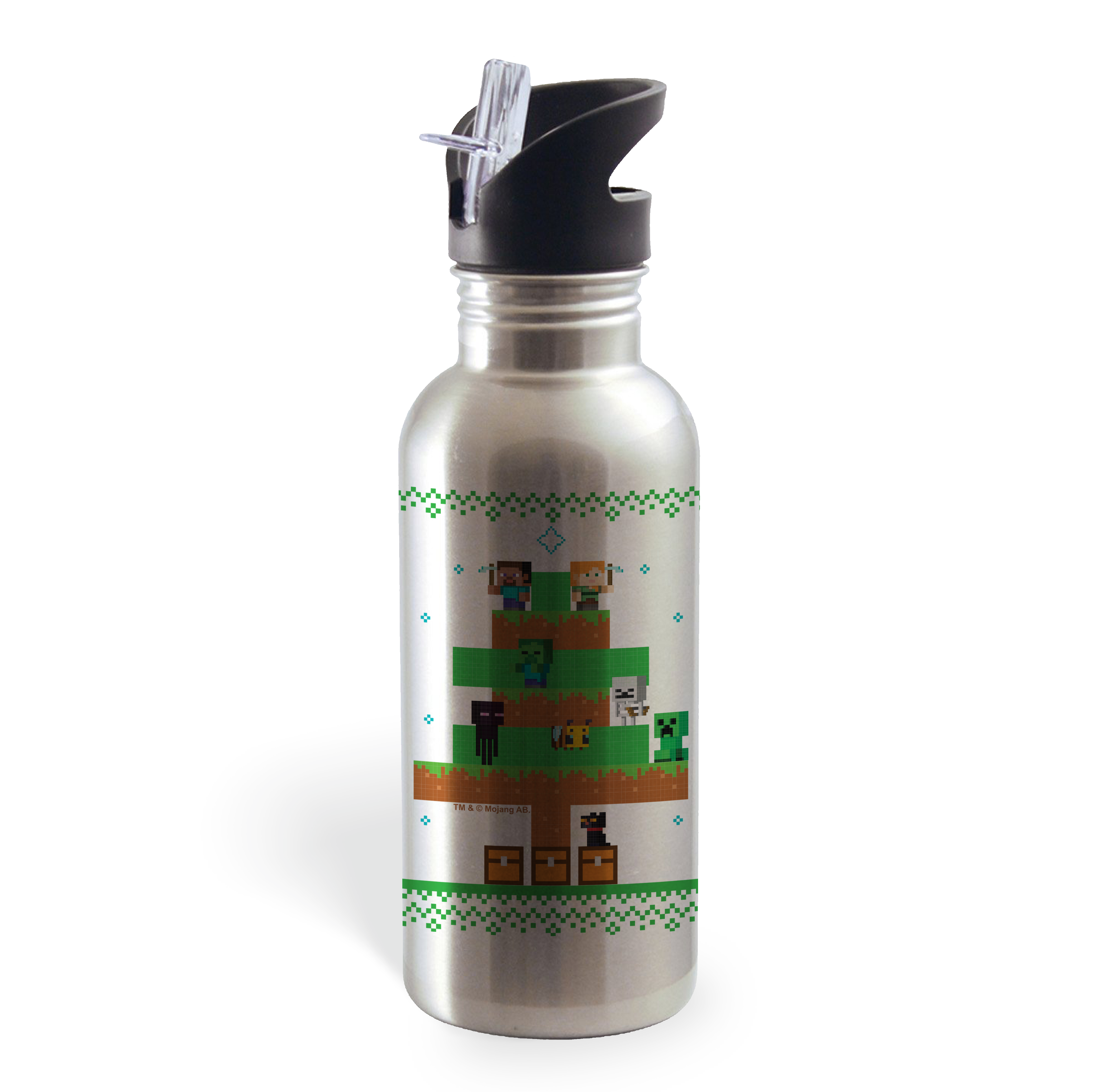 Minecraft Tree Sweater Personalized 20 oz Screw Top Water Bottle with Straw