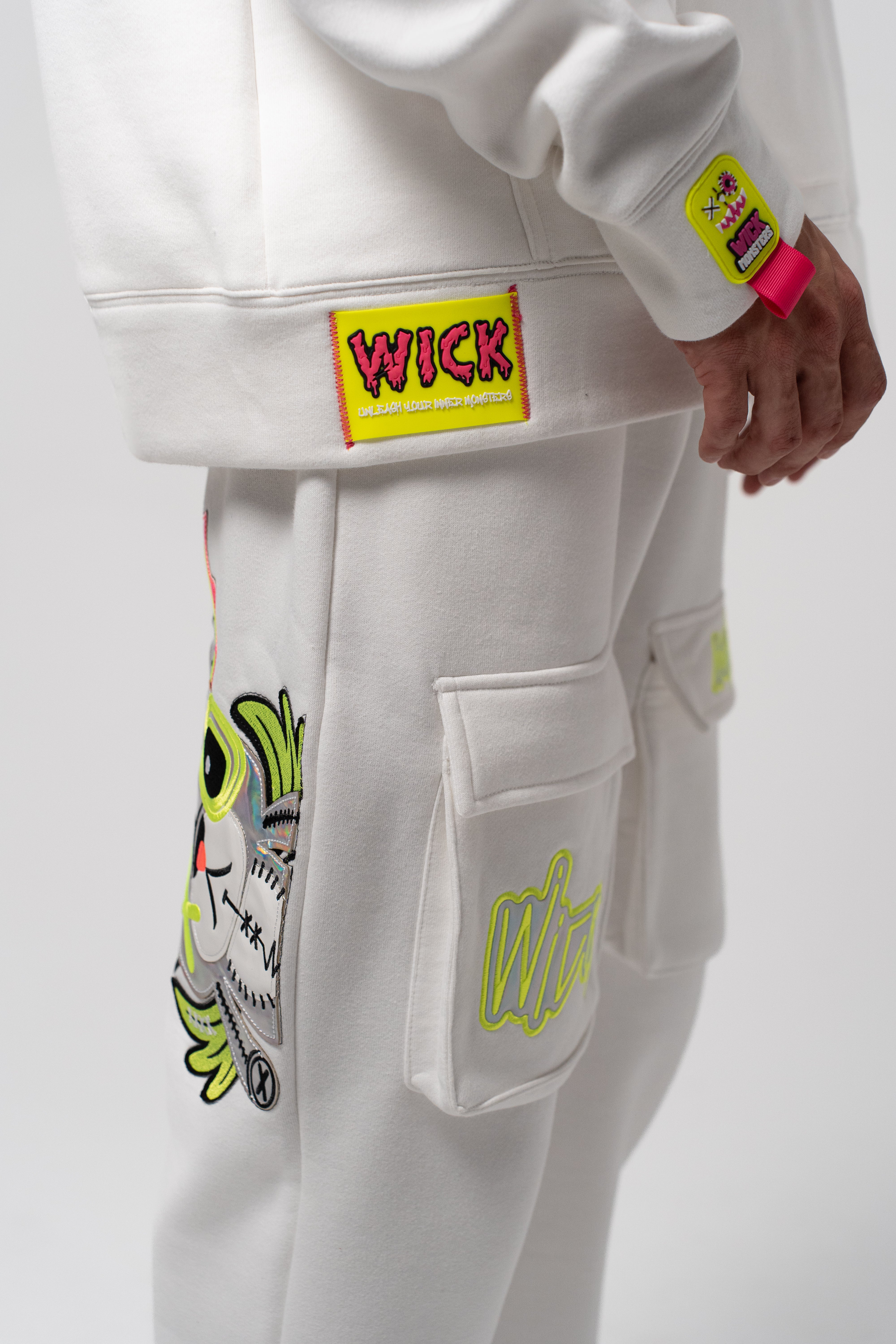 NEON ROYALTY CARGO SWEATPANTS WHITE