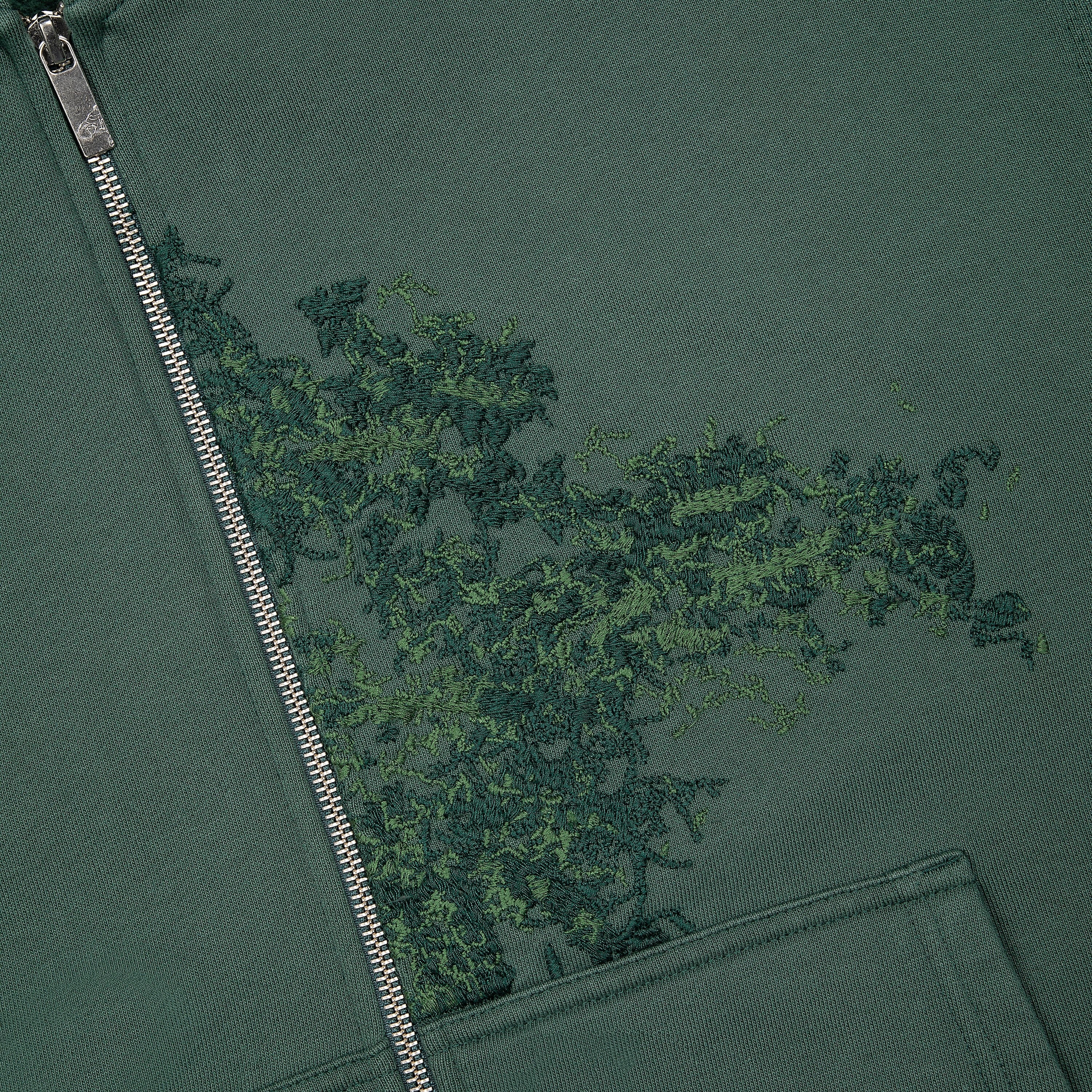 480gsm brushed cotton / 100% preshrunk cotton / 3D embroidery on the front / mix of print and 3D embroidery on the back / YKK double-slider zippers / slightly distressed on hood opening and ribs / fits true to size