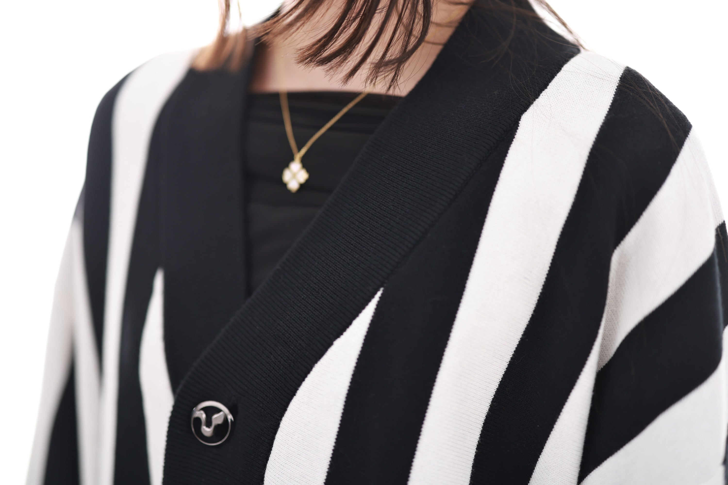 In addition to this, we crafted some special metal buttons to add a unique touch to this cardigan. The buttons are hand polished and sewn onto each cardigan.