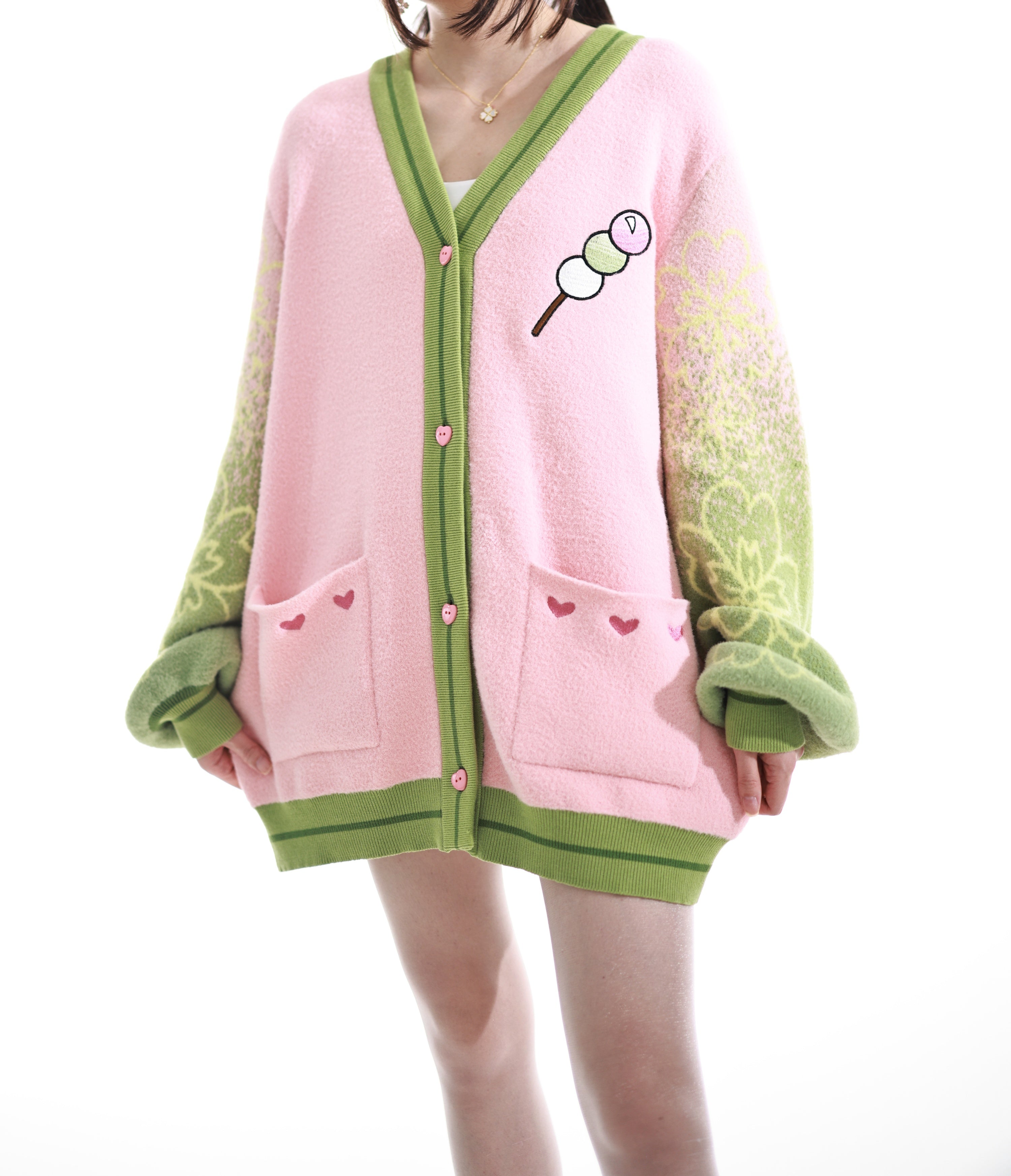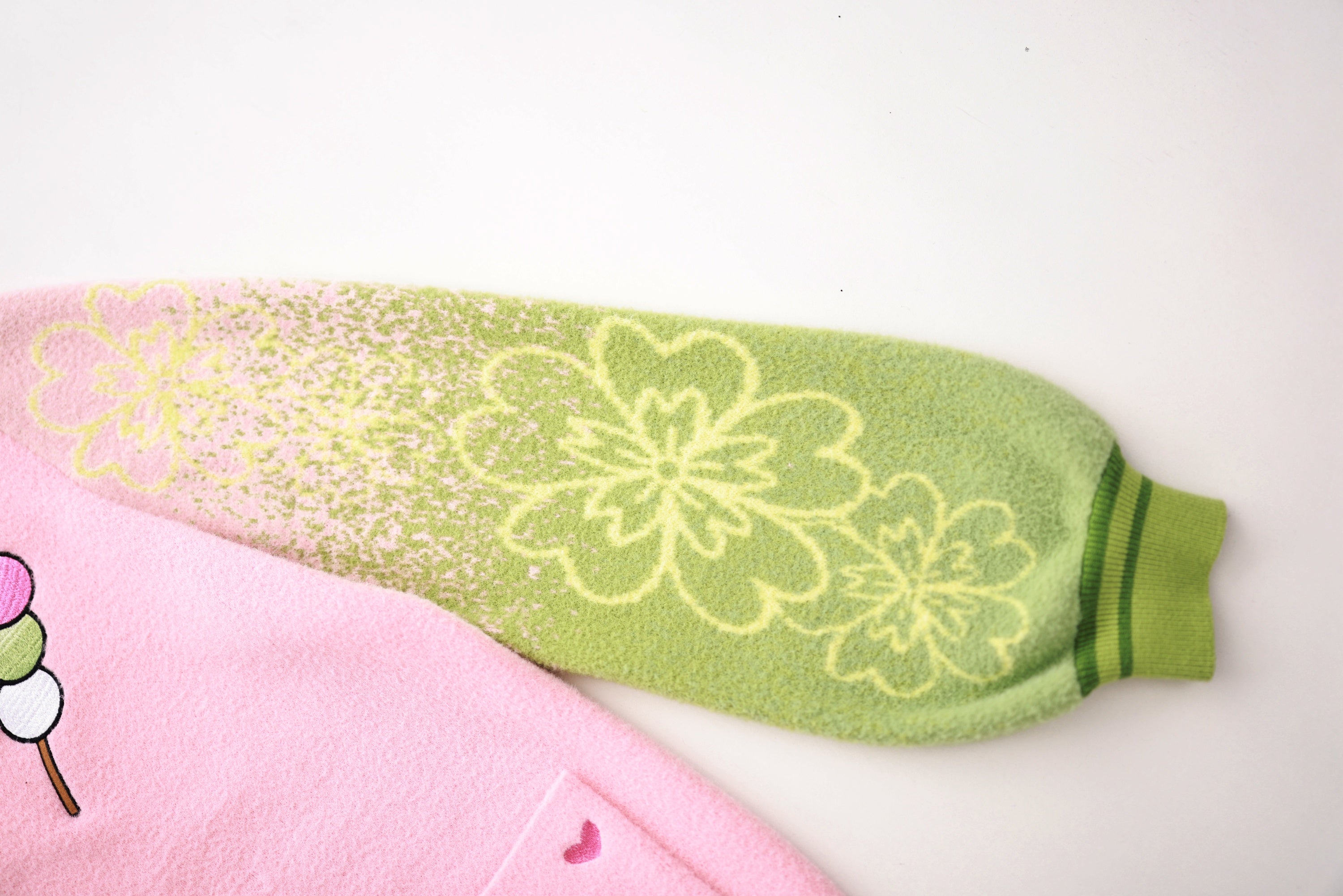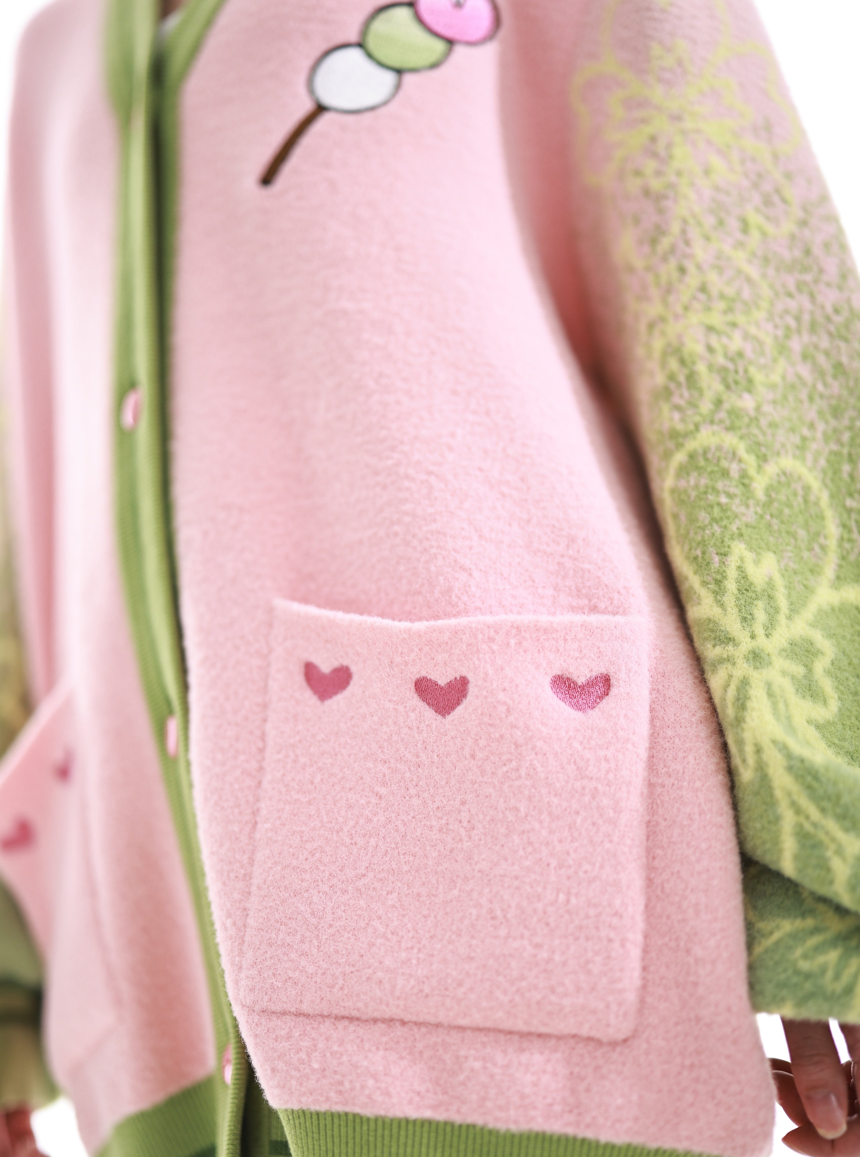 The fabric is made from jacquard knit and our in-house developed "cloud yarns". As the name suggests, the yarns are cloudy soft which makes this cardigan a unique sensation on your skin and pure joy to wear. The whole cardigan is made with your comfort in mind. Even though the yarns are super soft and the gradient pattern on the sleeves will not wash out as it is fully knitted from the different colors rather than just printed on the surface. The pockets also feature our special embroidery that takes countless hours to create and makes this item a true piece of luxury. The design is subtle enough so that you can comfortably wear it in public without being noticed as fan merch and yet it is bold enough to be positively recognized by fellow fans.