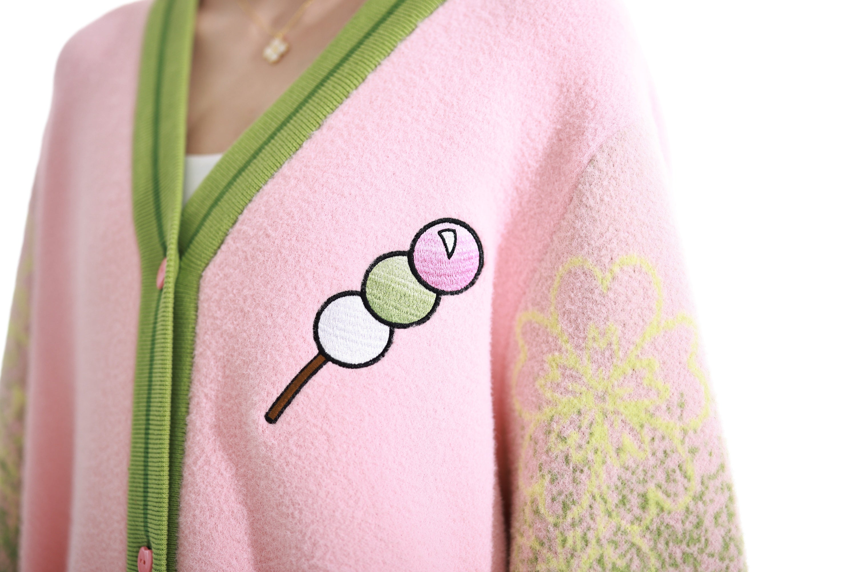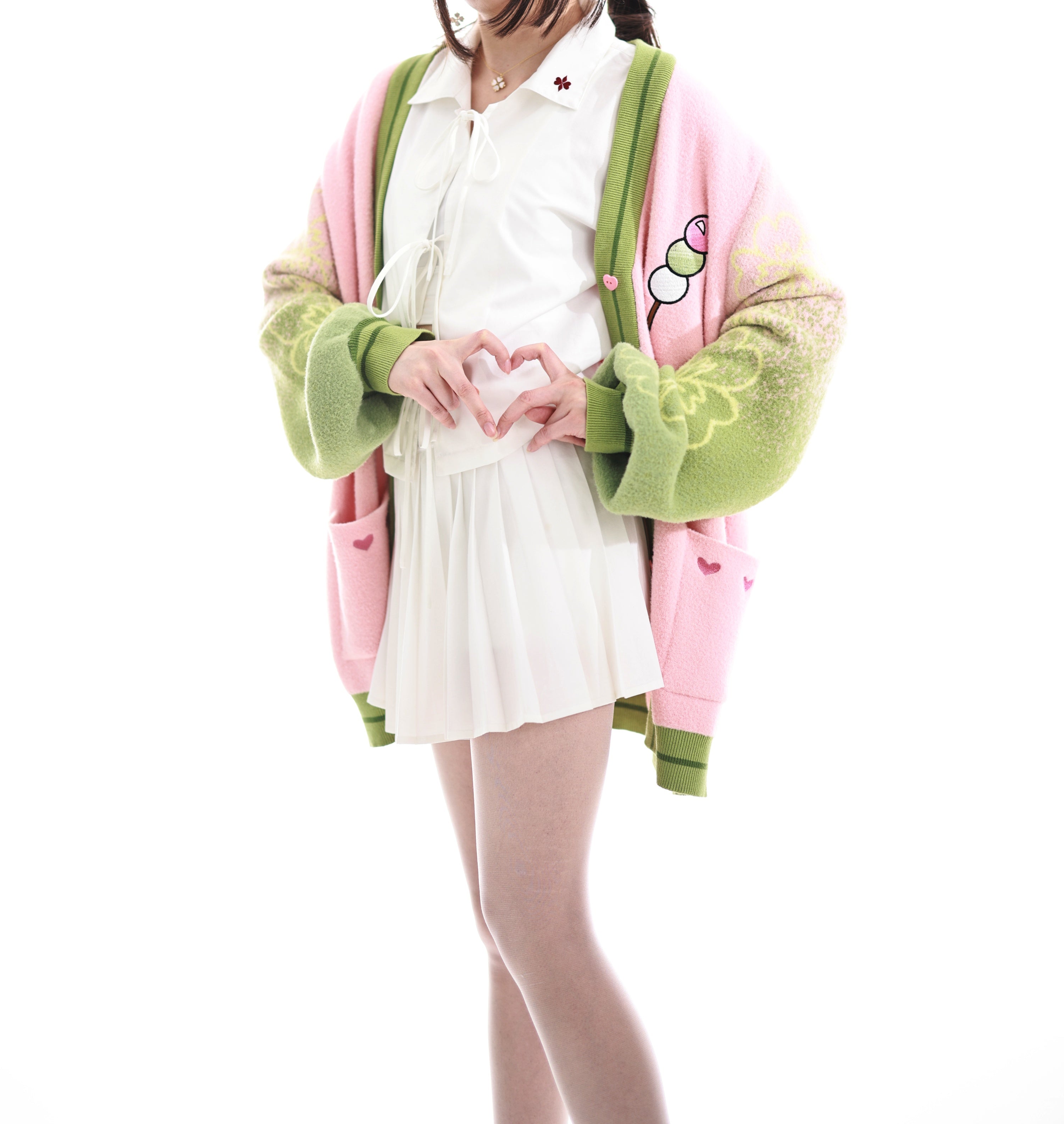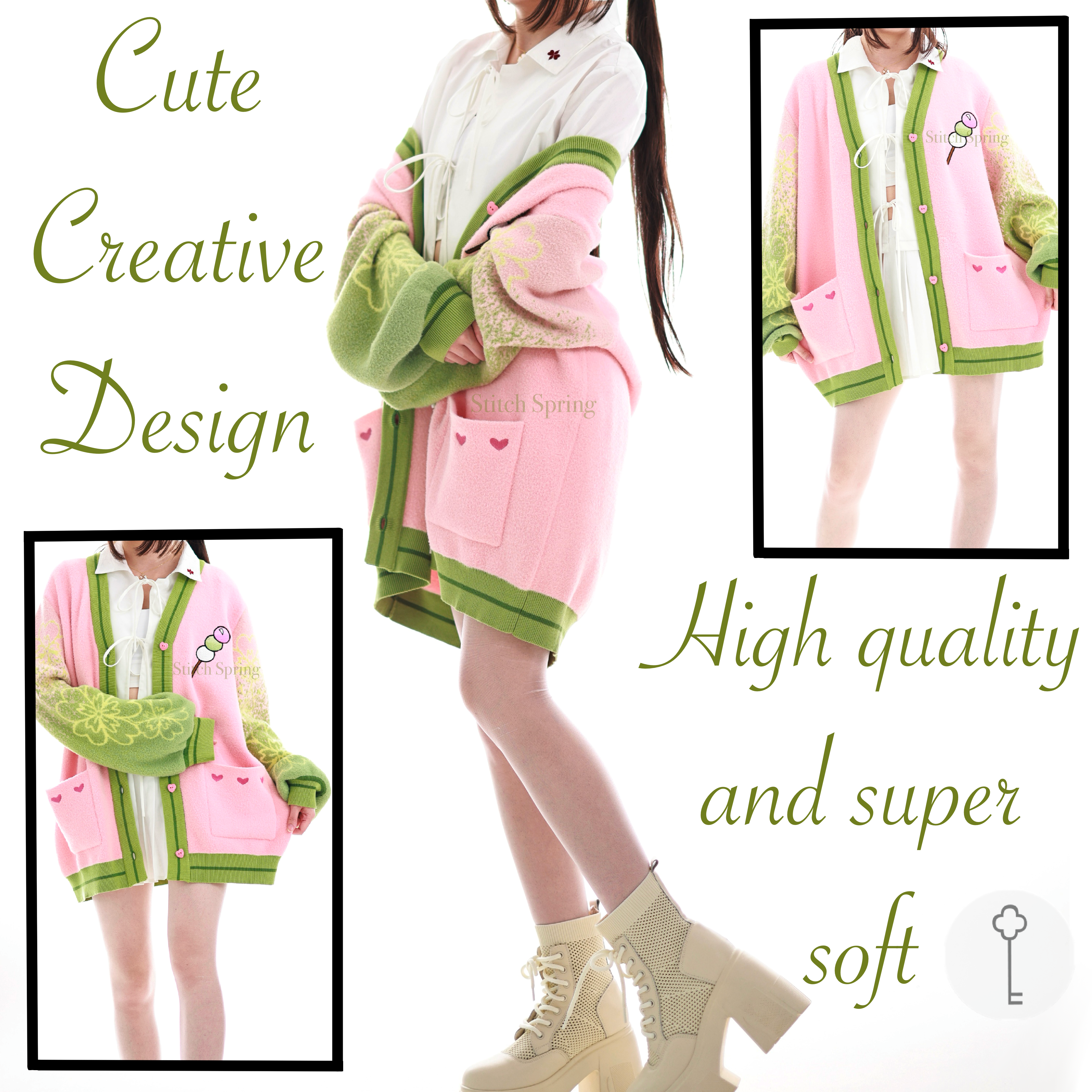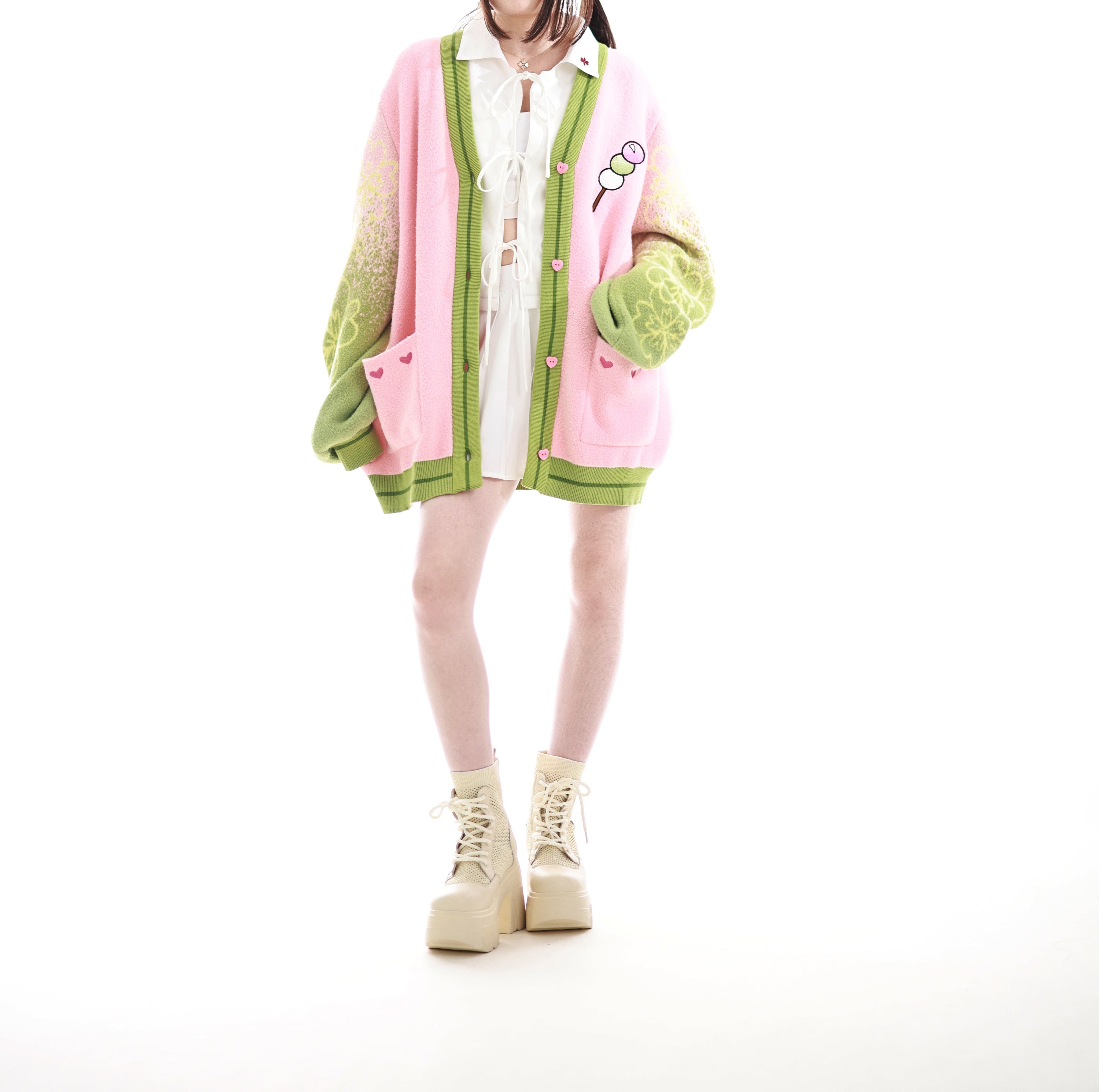 The fabric is made from jacquard knit and our in-house developed "cloud yarns". As the name suggests, the yarns are cloudy soft which makes this cardigan a unique sensation on your skin and pure joy to wear. The whole cardigan is made with your comfort in mind. Even though the yarns are super soft and the gradient pattern on the sleeves will not wash out as it is fully knitted from the different colors rather than just printed on the surface. The pockets also feature our special embroidery that takes countless hours to create and makes this item a true piece of luxury. The design is subtle enough so that you can comfortably wear it in public without being noticed as fan merch and yet it is bold enough to be positively recognized by fellow fans.